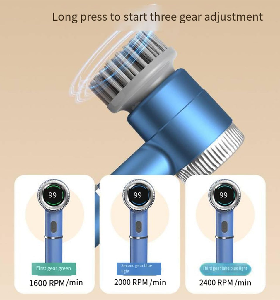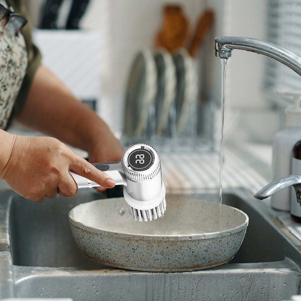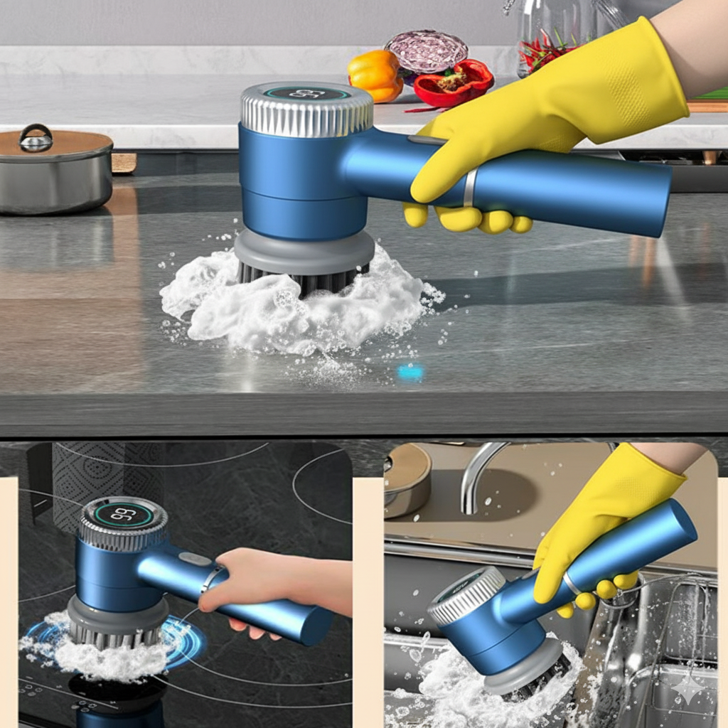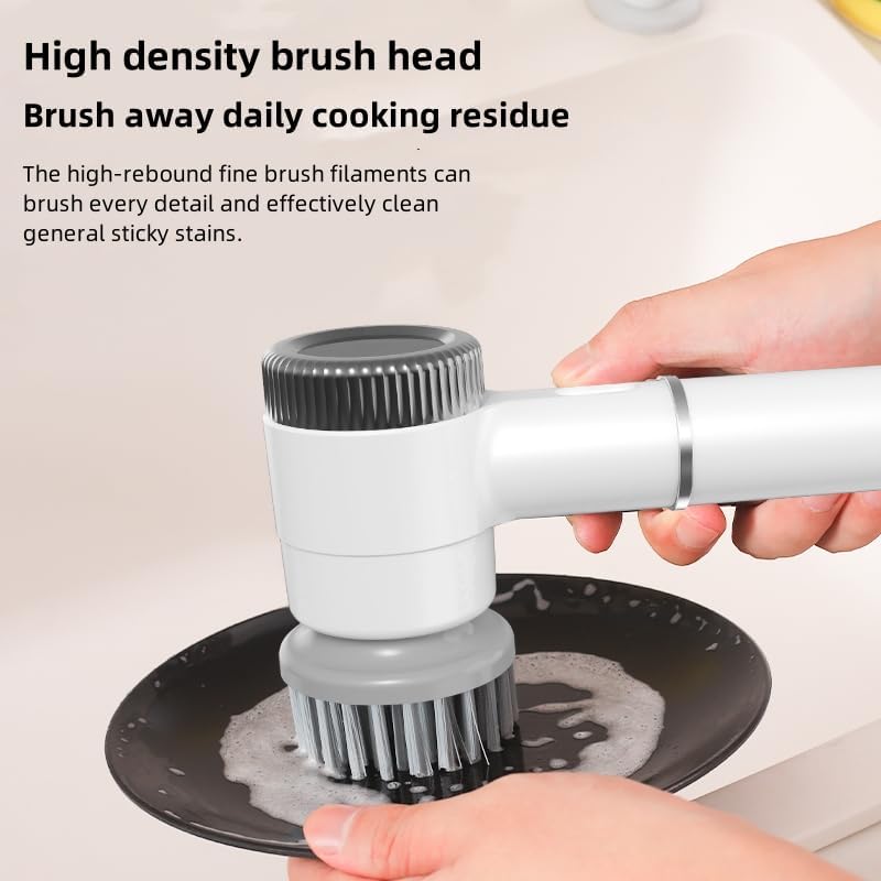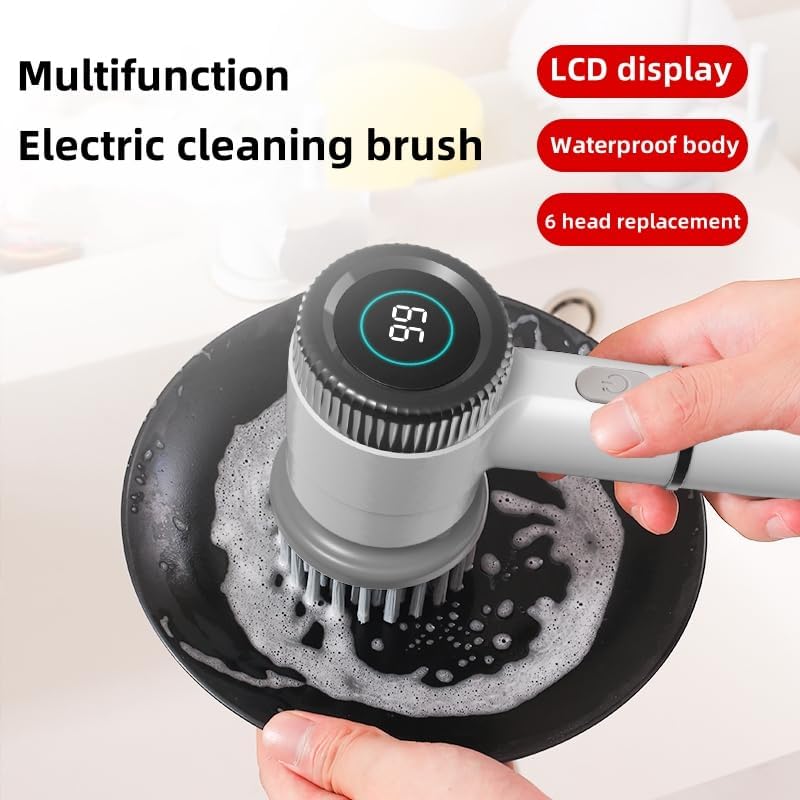 Now you can scrub smart, not hard, with this Multi-functional Electric Household Cleaning Brush. Power through the mess effortlessly with this one tool that cleans everything, from dishes and tiles to shoes! It is tough on dirt and gentle on your hands. Includes a versatile set of 6 brush heads that can be easily swapped for a customized clean, allowing you to tackle dishes, countertops, sinks, windows, bathtubs, tiles, shoes, and even hard-to-reach corners. The comfortable, handheld design with decisive spinning action reduces hand fatigue and protects joints, making challenging scrubbing tasks chemical-free and painless for your hands and knees. Delivers strong, consistent scrubbing power that cuts through grease, grime, and soap scum — for spotless results every time. Enjoy quick, hassle-free cleaning with a USB rechargeable battery — no cords, no batteries; grab and go when you need it.
